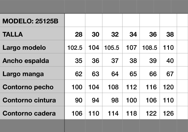 Si estás entre dos tallas, elige según cómo prefieras llevar tu abrigo: más ajustado o más suelto.