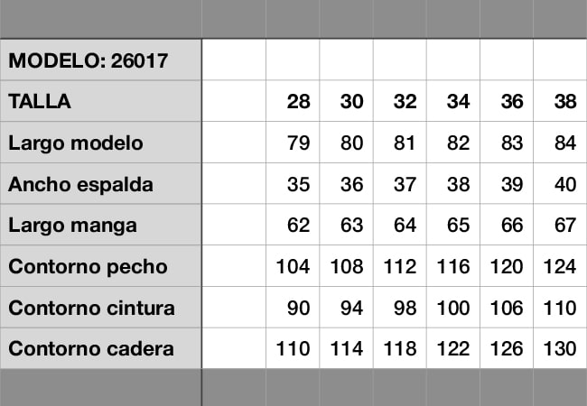 Si estás entre dos tallas, elige según cómo prefieras llevar tu abrigo: más ajustado o más suelto.